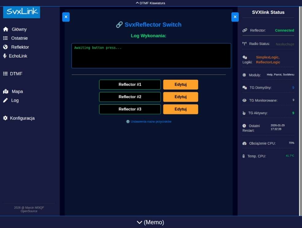 Narzędzie dla tych, którzy cenią wolność wyboru. Jeśli z jakimś administratorem ("DZbanem") Ci nie po drodze, możesz zdefiniować do 3 alternatywnych serwerów. Jednym kliknięciem podmieniasz dane logowania w locie – skrypt sam zrestartuje SvxLinka z nowymi ustawieniami.