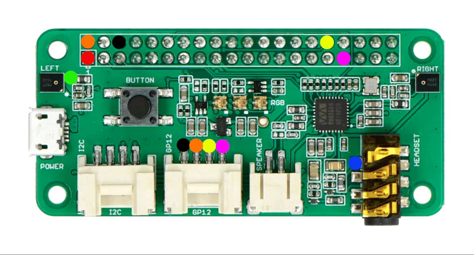 Karta dźwiękowa ReSpeaker wymaga pewnych modyfikacji ale niejest to trudne i na zdjęciu poniżej pokazuje jakie PINY i złącza używam do podłączenia SA818S-ce